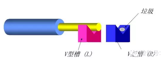 问题发生的原因如上图所示,肯定是V型槽内有垃圾所致,导致光纤放置V槽之后左右光纤不在一个水平直线上面,这个时候机器不能自动调芯的话,就没办法继续完成熔接。即使是可以调芯的机器,V型槽里面的垃圾太多也会直接导致马达超行程无法对准光纤,还会缩短机器的使用寿命。